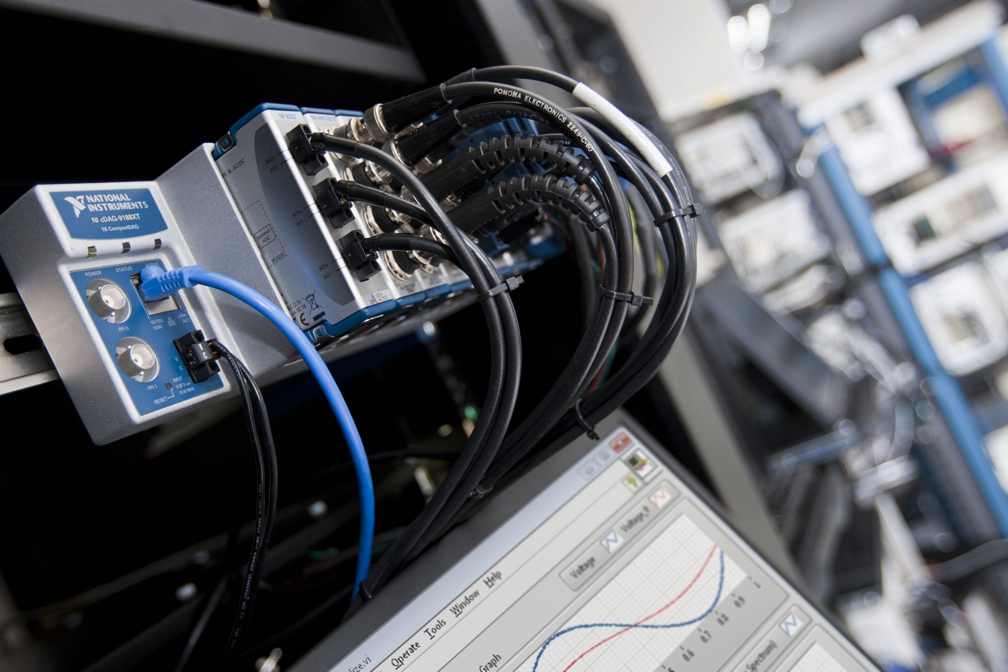 Trabajamos con dispositivos de adquisición de datos (DAQ), sensores y actuadores, software de supervisión y control (SCADA), plataformas de desarrollo como LabVIEW, así como estructuras y soportes mecánicos personalizados, que permiten automatizar procesos y garantizar la repetitividad de las mediciones.